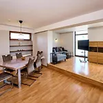 Panoramasicht - Daun Von Oben Appartement biedt een balkon en een zitruimte en is ingericht met een bank, en moderne gemakken zoals een flatscreen TV met satellietzenders. De 1-badkamer accommodatie biedt 2 slaapkamers aan. 1 badkamer biedt over een apart toilet en een douche, aangeboden voor comfort van de gasten. Daarnaast vindt u er een droger en handdoeken.